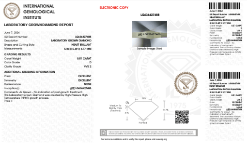 เพชรแท้ Lab Grown Diamond 0.32 กะรัต น้ำ 98 เกรด VS1 EX EX EX N พร้อมเซอร์ IGI (1CER353)