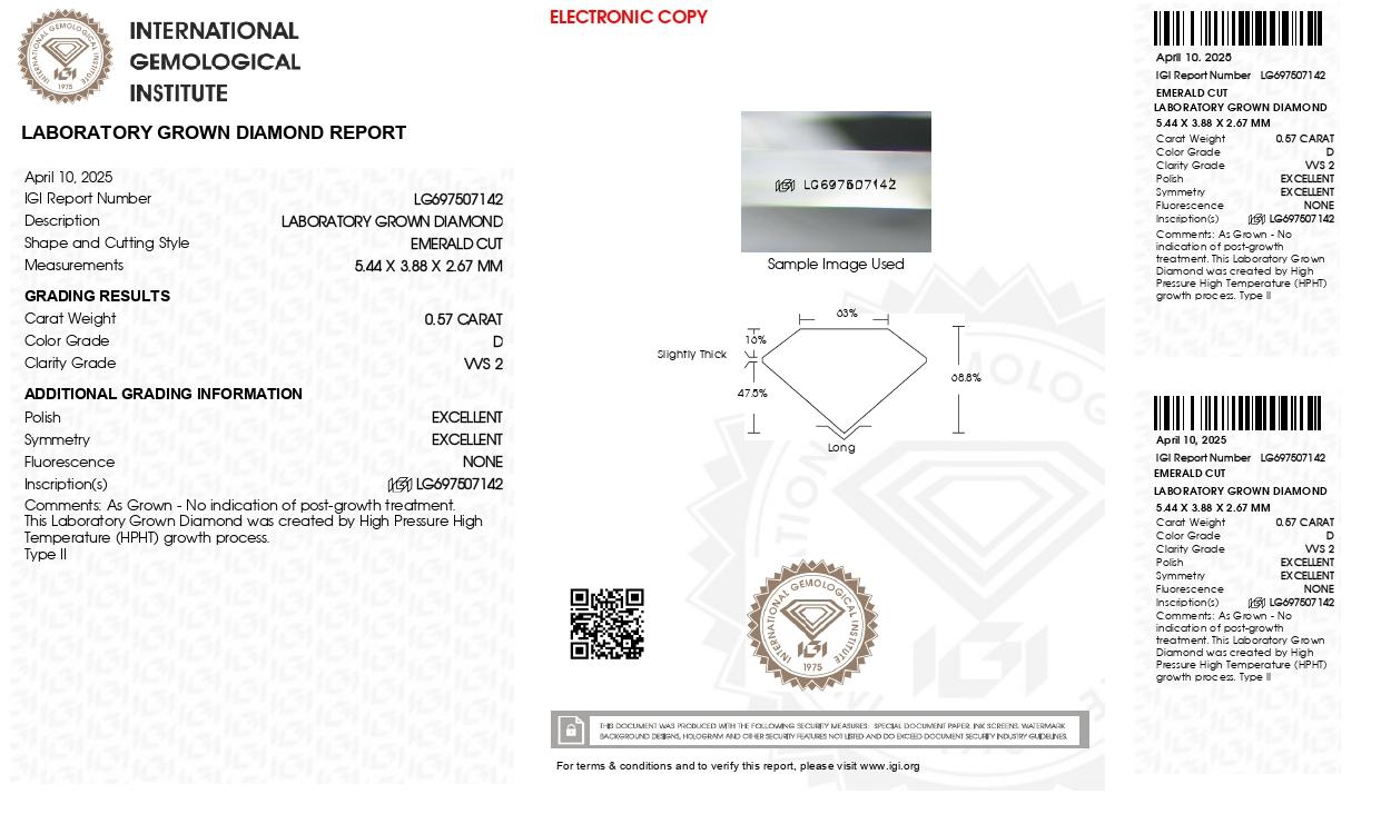เพชรแท้ Lab Grown Diamond 0.57 กะรัต น้ำ 100 เกรด VVS2 EX EX N พร้อมเซอร์ IGI (1CER1898)