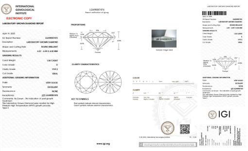 เพชรแท้ Lab Grown Diamond 3.02 กะรัต น้ำ 99 เกรด VS1 EX EX N เซอร์ IGI (1CER66)